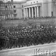 Lata 20., Warszawa, Polska. Marszałek Józef Piłsudski przyjmuje defiladę, w tle pomnik księcia Józefa Poniatowskiego i Pałac Saski. Fot. NN, Instytut Polski i Muzeum im. gen. Sikorskiego w Londynie