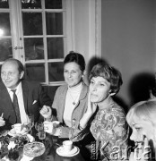 lata 60-te, Warszawa, Polska. Artyści Henryk Stażewski (2. od lewej) i Ahmed Cherkaoui (1. od lewej) oraz Aleksander Rafałowski (1. od prawej) Fot. Irena Jarosińska, zbiory Ośrodka KARTA