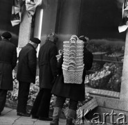 Lata 60., Warszawa, Polska. Handlarka sprzedaje znicze na ulicy. Fot. Jerzy Konrad Maciejewski, zbiory Ośrodka KARTA