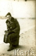 Lato 1940, Weier im Emmental, Szwajcaria. Internowany sierż. Jerzy Konrad Maciejewski, żołnierz 2. Dywizji Strzelców Pieszych pozuje do zdjęcia na tle paprotki w doniczce. Fot. NN, kolekcja Jerzego Konrada Maciejewskiego, zbiory Ośrodka KARTA