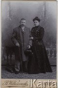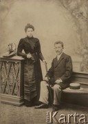Przed 1901, Łódź, Cesarstwo Rosyjskie. Kobieta w ciemnej sukni i mężczyzna w surducie, portret. Fot. Bronisław Wilkoszewski, zbiory Ośrodka KARTA, przekazała Agata Niewiarowska