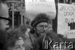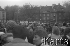 05.1989, Warszawa, Polska. Zbieranie podpisów wyborczych na kandydatów Komitetu Obywatelskiego Solidarność w wyborach do Sejmu i Senatu - pod kościołem św. Zygmunta na placu Konfederacji. Fot. Artur Polit, zbiory Fundacji Ośrodka KARTA