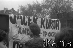 1981, Kraków, Polska. Spotkanie z Jackiem Kuroniem w Filharmonii Krakowskiej. Fot. Stanisław Kulawiak, zbiory Ośrodka KARTA.