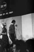Wrzesień lub październik 1981, Gdańsk, Polska.. Konferencja prasowa BIPS (Biuro Informacji Prasowej Solidarność) podczas I Krajowego Zjazdu Delegatów NSZZ „Solidarność”. Na zdjęciu Janusz Onyszkiewicz i Jan Rulewski. Fot. NN, zbiory Ośrodka KARTA, udostępnił Krzysztof Frydrych.