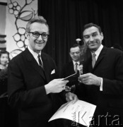 27.05.1968, Warszawa, Polska. Uroczystość wręczenia Nagród Artystycznych "Złota Maska" roku 1967 - prestiżowego konkursu zorganizowanego przez redakcję "Ekspressu Wieczornego". Aktor i piosenkarz - Jerema Stępowski - odbiera "Srebrną Maskę". Fot. Jarosław Tarań, zbiory Ośrodka KARTA