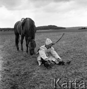 18.08.1968, Polska. Film "Pan Wołodyjowski", reż. Jerzy Hoffman - plan filmowy.Kaskader czekający na kolejne ujęcie, obok stoi koń. Fot. Jarosław Tarań, zbiory Ośrodka KARTA
