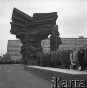 1977, Sosnowiec, woj. Katowice, Polska. Członkowie egzekutyw partyjnych z Katowic, Bielska i Częstochowy pod Pomnikiem Czynu Rewolucyjnego. Z lewej stoi Jerzy Ziętek. Fot. Kazimierz Seko, zbiory Ośrodka KARTA
