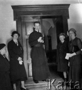 Lata 30., Wołżyn, woj. nowogródzkie, Polska. Pożegnanie księdza Bolesława Zabłuckiego (2. z lewej w 1. rzędzie). Fot. NN, zbiory Archiwum Historii Mówionej Ośrodka KARTA i Domu Spotkań z Historią, udostępnili Maria i Leonard Mikuccy w ramach projektu "KARTA z Polakami na Wschodzie" (sygnatury nagrań - AHM_PnW_1296, AHM_PnW_1760).