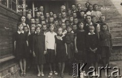 1938, Święciany, woj. wileńskie, Polska. Uczniowie klasy II gimnazjum wraz z nauczycielami. Wśród uczniów Anna Szwaglis, matka Andrzeja Boruckiego. Fot. NN, zbiory Andrzeja Boruckiego, reprodukcje cyfrowe w Ośrodku KARTA w Warszawie i w Instytucie Polskim i Muzeum im. gen. Sikorskiego w Londynie.