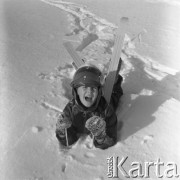 lata 60-te, Śląsk, Polska. Kobiety w kombinezonach lotniczych stojące obok szybowca. Fot. Kazimierz Seko, zbiory Ośrodka KARTA