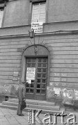 Listopad 1981, Warszawa, Polska. Uniwersytet Warszawski - strajk okupacyjny studentów solidaryzujących się ze studentami Wyższej Szkoły Inżynierskiej w Radomiu. Przechodnie czytają informacje o strajku zawieszone na drzwiach wejściowych do Instytutu Geografii przy Krakowskim Przedmieściu. Fot. NN, zbiory Ośrodka KARTA/Independent Polish Agency (IPA) przekazał Józef Lebenbaum