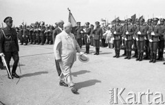 Lipiec 1959, Warszawa, Polska. Uroczyste obchody piętnastolecia PRL. Lotnisko Okęcie - powitanie radzieckiej delegacji z Nikitą Chruszczowem na czele. Fot. Romuald Broniarek/KARTA