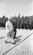 Lipiec 1959, Warszawa, Polska. Uroczyste obchody piętnastolecia PRL. Lotnisko Okęcie - powitanie radzieckiej delegacji. Na pierwszym planie: Józef Cyrankiewicz, Nikita Chruszczow i Władysław Gomułka. Fot. Romuald Broniarek/KARTA