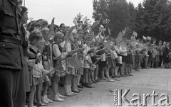 Lipiec 1959, Katowice, Polska. Obchody piętnastolecia PRL. Harcerze na wiecu z udziałem Nikity Chruszczowa. Fot. Romuald Broniarek/KARTA
