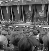 Lipiec 1959, Katowice, Polska. Obchody piętnastolecia PRL, członkowie polskiej i radzieckiej delegacji rządowej stoją na trybunie honorowej. Fot. Romuald Broniarek/KARTA