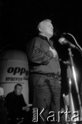 18-20.11.1988, Warszawa, Polska. Ogólnopolski Przegląd Piosenki Aktorskiej OPPA, klub studencki Uniwersytetu Warszawskiego Hybrydy, n/z Marian Opania, w głębi Wojciech Młynarski. Fot. Artur Polit, zbiory Fundacji Ośrodka KARTA