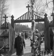 9.06.1979, Kraków, Polska. Pierwsza pielgrzymka papieża Jana Pawła II do Polski w dniach 2-10 czerwca 1979 roku. Zespół muzyczny i wierni zgromadzeni przed kościołem Wniebowzięcia Najświętszej Maryi Panny i św. Wacława w opactwie cystersów w Mogile w związku z przyjazdem Ojca Świętego. Fot. Edward Grochowicz, zbiory Ośrodka KARTA