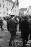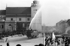 3.05.1982, Warszawa, Polska. Niezależna demonstracja na Starym Mieście, zorganizowana przez podziemne struktury "Solidarności" w rocznicę uchwalenia Konstytucji 3 Maja. Fot. Maciej Czarnocki, zbiory Ośrodka KARTA