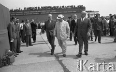 Lipiec 1959, Warszawa, Polska. Uroczyste obchody piętnastolecia PRL. Lotnisko Okęcie - powitanie radzieckiej delegacji z Nikitą Chruszczowem na czele. Fot. Romuald Broniarek/KARTA
