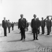Marzec 1967, Warszawa, Polska. Powitanie Waltera Ulbrichta (stoi z prawej), przewodniczącego Rady Państwa Niemieckiej Republiki Demokratycznej. W środku stoi Władysław Gomułka. Fot. Romuald Broniarek/KARTA