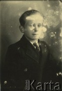 Druga połowa lat 30. do 1941, Kozienice, Polska. Portret chłopca w marynarce, jasnej koszuli i krawacie. Zdjęcie wykonane w atelier fotograficznym żydowskiego fotografa Chaima Bernemana. Przed wojną zakład mieścił się w Kozienicach na rogu ulic Warszawskiej i Maciejowickiej, przed wybuchem wojny albo już w czasie niemieckiej okupacji został przeniesiony na ulicę Lubelską 13. Cała kolekcja jest datowana na okres od drugiej połowy lat 30-tych do roku 1941, kiedy Chaim Berneman wraz z rodziną został zesłany do obozu pracy w Wolanowie. Berneman zmarł po ucieczce z obozu. Fot. Chaim Berneman (Chaim Berman), zbiory Ośrodka KARTA