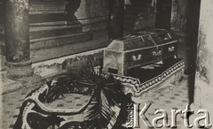 1945-1946, Custoza, Werona, Włochy. Ossuarium. W krypcie pod ołtarzem znajdują się ekshumowane kości żołnierzy, którzy zginęli w czasie wojny austriacko-piemonckiej w XIX wieku. Kaplica kości stoi na wzgórzu, gdzie stoczono dwie bitwy przegrane przez Włochów. Fot. NN, kolekcja Marcina Rudzińskiego, zbiory Ośrodka KARTA