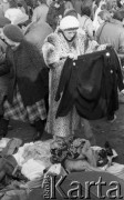 22.11.1986, Warszawa - Rembertów, Polska. Bazar w Rembertowie, kobieta oglądająca ubrania. Fot. Jarosław Tarań, zbiory Ośrodka KARTA, [86-43]