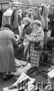 22.11.1986, Warszawa - Rembertów, Polska. Bazar z ubraniami w Rembertowie, kobiety oglądające sweter. Fot. Jarosław Tarań, zbiory Ośrodka KARTA, [86-43]