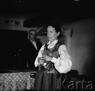 1961, Kadzidło, Polska. Kobieta w stroju kurpiowskim we wnętrzu. Fot. Irena Jarosińska, zbiory Ośrodka KARTA