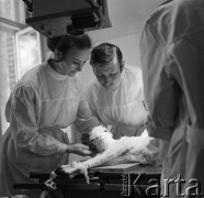 1963, Olsztyn, Polska. Studenci Wydziału Zootechnicznego Wyższej Szkoły Rolniczej podczas zajęć w laboratorium weterynaryjnym. Fot. Irena Jarosińska, zbiory Ośrodka KARTA