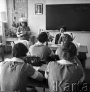 1968, Warszawa, Polska. Uczennice Technikum Kolejowego uczące się w internacie. Fot. Jarosław Tarań, zbiory Ośrodka KARTA