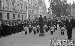 Lata 50., Warszawa, Polska. Zakończenie roku szkolnego w mieszczącej się przy ulicy Karola Wójcika 5 (od 1991 roku ulica ks. Ignacego Kłopotowskiego) szkole, do której uczęszczał Marek Jarosiński, syn fotografki Ireny Jarosińskiej. Na zdjęciu dziewczynka trzyma w ręku książkę autorstwa Jana Brzechwy. Fot. Irena Jarosińska, zbiory Ośrodka KARTA