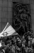 19.04.1988, Warszawa, Polska. 45. rocznica Powstania w Getcie Warszawskim. Uroczystości pod pomnikiem Bohaterów Getta. Brali w nich udział więźniowie obozów koncentracyjnych, delegacje z Izraela i całego świata oraz przedstawiciele Solidarności. Fot. WojciechDruszcz, zbiory Ośrodka KARTA
