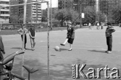 Wiosna 1990, Warszawa, Polska. Kampania wyborcza przed wyborami samorządowymi w dniu 27 maja 1990 roku. Młodzi ludzie stoją przy ścianie Pałacu Kultury i Nauki, obok wiszą plakaty wyborcze "Solidarności". Fot. Wojciech Druszcz, zbiory Ośrodka KARTA
