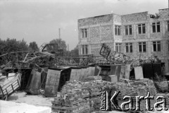 1990, Warszawa, Polska. Katastrofa budowlana: zwalony żuraw przy ulicy Gwiaździstej. Fot. Artur Polit, zbiory Fundacji Ośrodka KARTA