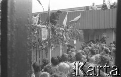 1.10.1981, Gdańsk, Polska.. Obrady I Krajowego Zjazdu Delegatów NSZZ „Solidarność”. Lech Wałęsa wchodzący na mównicę. Fot. NN, zbiory Ośrodka KARTA, udostępnił Krzysztof Frydrych.