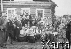 1954, Pawłowsk, Irkucka obł., ZSRR. Grupa Litwinów świętuje czyjeś zwolnienie na Litwę, na harmonii gra Pietrauskas, a na skrzypcach Dylis. Zdjęcie z 1954 lub 1955 roku. Fot. NN, zbiory Ośrodka KARTA, udostępnił Ryszard Mackiewicz