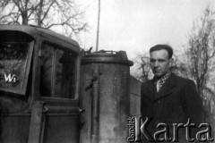 Maj-czerwiec 1944, Wileńszczyzna. NN członek AK przy samochodzie ciężarowym napędzanym na gaz drzewny. Fot. Sergiusz Sprudin [zbiór zdjęć Janusza Chorążaka nr. 94], zbiory Ośrodka KARTA