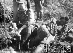 Maj-czerwiec 1944, Wileńszczyzna. Pchor. Kazimierz Wróblewski "Janusz" (d-ca 3 plut. 4 Bryg. Part.) i ppor. Wiktor Wiącek "Rakoczy" (d-ca 1 komp. 5 Bryg. Part.) Fot. Sergiusz Sprudin [zbiór zdjęć Janusza Chorążaka nr. 29], zbiory Ośrodka KARTA
