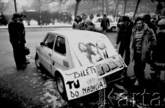 wrzesień-październik 1981, Gdańsk, Polska. Obrady I Krajowego Zjazdu Delegatów NSZZ „Solidarność”. Fiat 126p z uczestnikami Zjazdu. Fot. Maciej Czarnocki, zbiory Ośrodka KARTA.