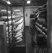 1968, Łódź, Polska. Widzewskie Zakłady Bawełniane im. "1 Maja", pracownica w przędzalni. Fot. Romuald Broniarek/KARTA