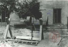 28.11.1965-2.01.1966, Czechosłowacja. Wejście na teren fabryki, w której zorganizowano wystawę maszyn do obróbki drewna polskiej Centrali Handlu Zagranicznego "Metalexport". Fot. Irena Jarosińska, zbiory Ośrodka KARTA