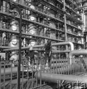 1968, Płock, Polska. Mazowieckie Zakłady Rafineryjne i Petrochemiczne, pracownik kontroluje działanie urządzeń. Fot. Romuald Broniarek/KARTA