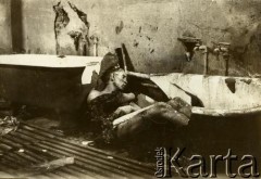 Wrzesień 1923, Warszawa, Polska. Ofiara wypadku w koszarach Batalionu Chemicznego. Do zdarzenia doszło w czasie rozbrajania miny bojowej, która została zanurzona w jednej z wanien w łaźni żołnierskiej. Fot. z albumu porucznika Jana Obłoczyńskiego z Batalionu Chemicznego WP, zbiory Ośrodka KARTA, przekazała Jolanta Wolszczynin.
