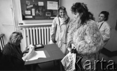 28.01.1989, Warszawa, Polska. Warszawskie eliminacje do wyborów Miss Polonia, rejestracja kandydatek. Fot. Jarosław Tarań, zbiory Ośrodka KARTA [89-5]