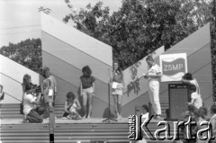 28.05.1972, Warszawa, Polska. Cepeliada, pokaz mody ślubnej inspirowanej motywami stroju ludowego, w tle Pałac Kultury i Nauki. Fot. Jarosław Tarań, zbiory Ośrodka KARTA [72-174]