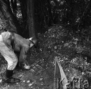 Wrzesień 1968, Warszawa, Polska. Forty Twierdzy Warszawa na Mokotowie. Rozminowywanie. Żołnierz wykopujący z ziemi niewypał. Fot. Jarosław Tarań, zbiory Ośrodka KARTA