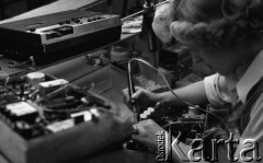 Grudzień 1980, Bydgoszcz, Polska Pracownica Zakładów Radiowych "Unitra-Eltra" z lutownicą. Fot. Jarosław Tarań, zbiory Ośrodka KARTA [80-18]