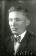 Druga połowa lat 30. do 1941, Kozienice, Polska. Portret młodego mężczyzny w marynarce i białej koszuli z muszką. Zdjęcie wykonane w atelier fotograficznym żydowskiego fotografa Chaima Bernemana. Przed wojną zakład mieścił się w Kozienicach na rogu ulic Warszawskiej i Maciejowickiej, przed wybuchem wojny albo już w czasie niemieckiej okupacji został przeniesiony na ulicę Lubelską 13. Cała kolekcja jest datowana na okres od drugiej połowy lat 30-tych do roku 1941, kiedy Chaim Berneman wraz z rodziną został zesłany do obozu pracy w Wolanowie. Berneman zmarł po ucieczce z obozu. Fot. Chaim Berneman (Chaim Berman), zbiory Ośrodka KARTA