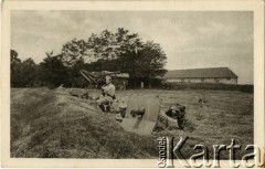 1914-1918, Austro-Węgry. Żołnierze i pracownicy służby pocztowej. 1. z prawej siedzi Feliks Parasiewcz. Fot. NN, zbiory Ośrodka KARTA, udostępniła Jadwiga Parasiewicz-Kaczmarska